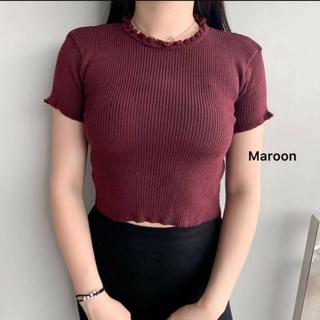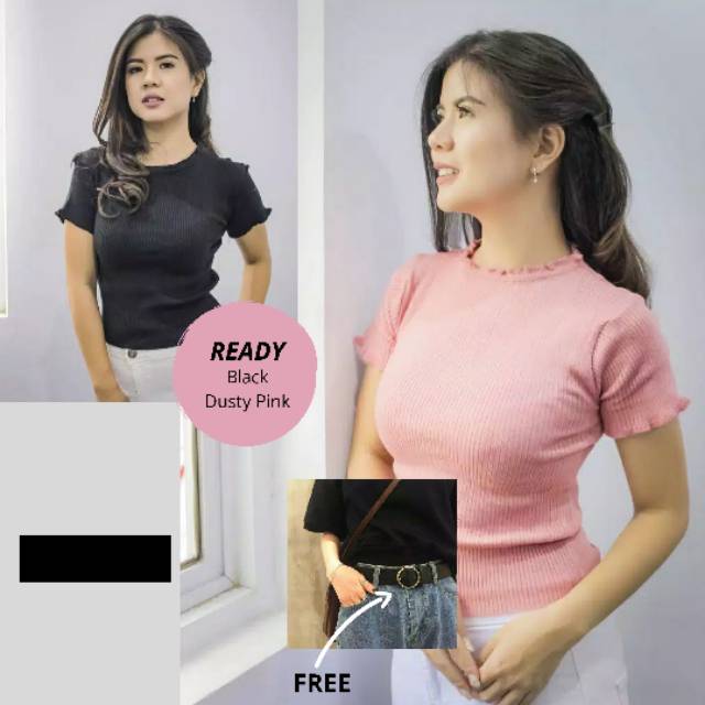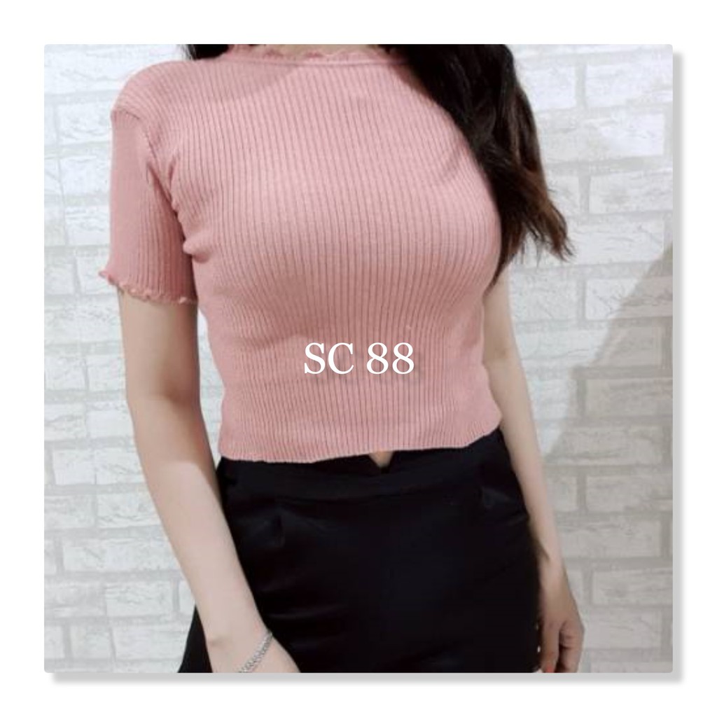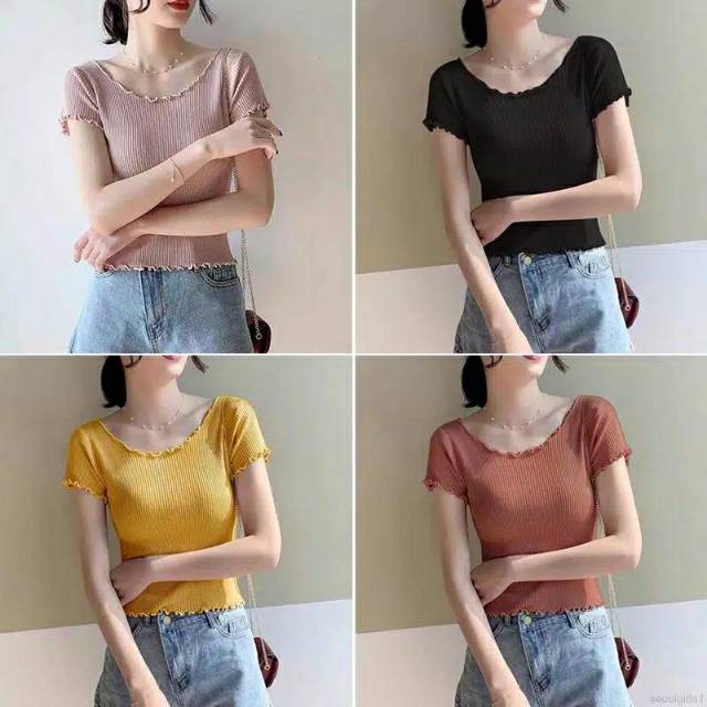 Atasan Wanita Tshirt Rajut Kriwil Pendek Crop Kriwil Pendek Baju Wanita Sweater Rajut Shopee Indonesia